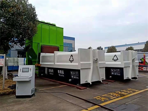 分體式垃圾站(也叫作一機(jī)兩箱式垃圾中轉(zhuǎn)站,也可一機(jī)配多箱),分體式垃圾站的垃圾壓縮裝置釆用水平壓縮工藝,將垃圾壓縮后推入設(shè)備前端的大容量垃圾集裝箱體里面;小型的分體式垃圾站日處理量可達(dá)120-200噸左右;中型的分體式垃圾站日處理量可達(dá)150-300噸左右;大型分體式垃圾站日處理量可達(dá)300-600噸左右。