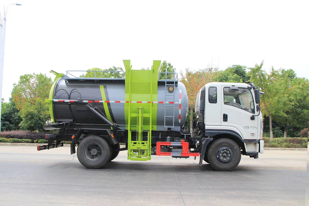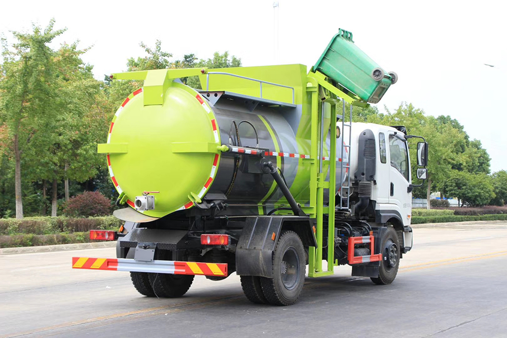 罐體采用優(yōu)質(zhì)碳鋼板材,罐體內(nèi)部選裝帶固液分離功能(全推推板,不銹鋼泔水分離網(wǎng)板),選裝罐內(nèi)加熱功能(用于嚴(yán)寒地帶防止罐內(nèi)餐飲垃圾凍結(jié)凝固,采用柴油燃燒機(jī)加熱,加熱速度快效果好,可設(shè)置高低溫實現(xiàn)自動溫控)。餐廚垃圾車帶全液壓操作系統(tǒng),罐體舉升自卸,拉桿式掛桶提升機(jī),可以掛120/240升垃圾桶進(jìn)行作業(yè),后蓋液壓驅(qū)動開啟、鎖緊,方便人員操作。